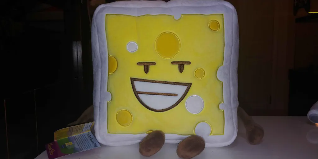 Coming straight from Munchy Muncher Island, it's everyone's favorite contestant from Battle For Palace Objects Reloaded, Cheese Slice! I mean, how could he not be your favorite? Look at how huggable and squishy he is now! If he weren't your favorite before, surely this would change that, right? RIGHT? Please say yes; he really needs this right now.